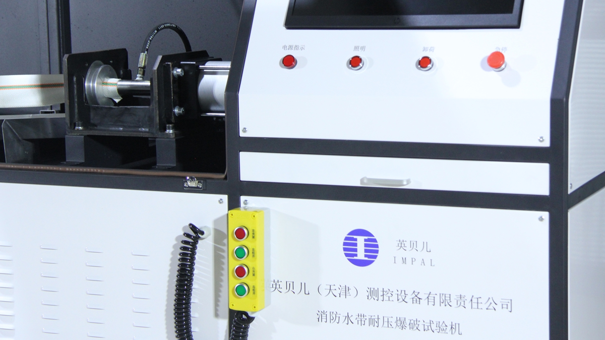 消防水带耐压爆破试验机是依照国家标准GB6246-2011《消防水带》中第5.4节和第5.5节实验方法设计制造而成。该试验机主要分为计算机集成控制系统、供水系统及耐压爆破试验装置等三大单元。设备在试验过程中,实时显示压力曲线,具有数据打印,数据采集的功能,断电能自动保存,无需人工干预,采用三缸柱塞泵作为输出压力源,可以根据试验要求进行升压、保压、降压等流程。可用于测试各种规格消防水带的水压性能和爆破参数以及渗水率性能,设备设计外管简洁大方,试验操作简单便捷,设计大屏显示,使得试验过程结果更加清楚直观。